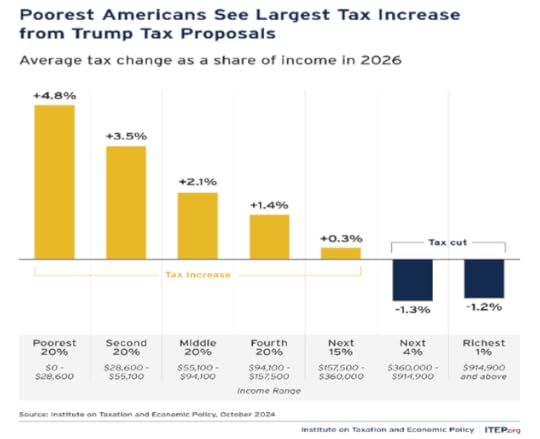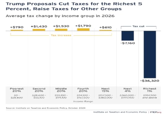 Trump claims that he will “deliver low taxes, low regulations, low energy costs, low interest rates and low inflation, so that everyone can afford groceries, a car and a beautiful home.” His new tax cuts range from income from overtime pay, tips and pension benefits to massive across-the-board cuts for individuals and corporations. This will undoubtedly reduce taxes for the very rich (yet again) but increase it for nearly every body else.