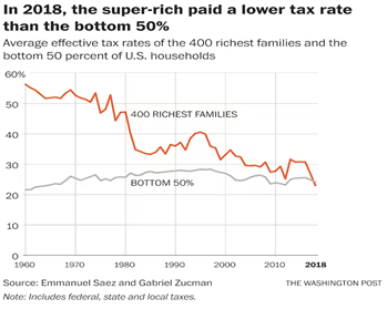 As for Trump’s last period of office, when he introduced sharp cuts in corporate and personal income tax, Emmanuel Saez and Gabriel Zucman of the University of California at Berkeley found that for the first time in a century, the 400 richest American families has lower effective tax rates than people in the bottom 50% of income earners.