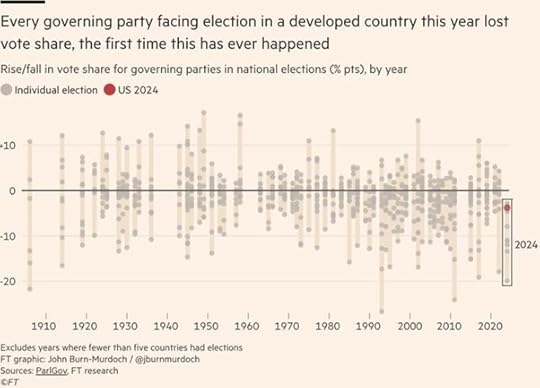 Why has Trump won? A first thought. Nearly every incumbent government in office during the pandemic slump and post-inflationary period has been ousted from power.