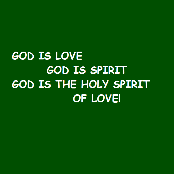 GOD IS LOVE; GOD IS SPIRIT; GOD IS THE HOLY SPIRIT OF LOVE
