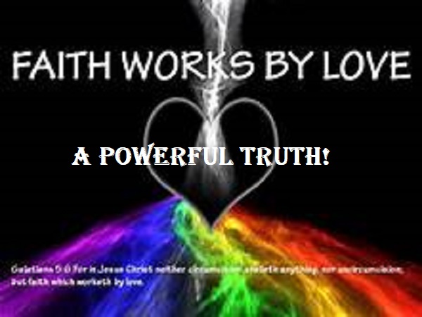 “…Faith which worketh by love…” (Galatians 5:6 KJV). IT IS LOVE THAT MAKES FAITH WORK. IT IS EASIER TO BELIEVE IN SOMEONE WHO LOVES YOU WITH A HOLY , IMMUTABLE LOVE LIKE GOD DOES.