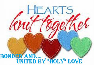 “...our hearts....knit together in love...” (Colossians 2:2 KJV). “...with all lowliness and meekness, with longsuffering, forbearing (like a servant towards) one another in love...” (Ephesians 4:2 KJV).