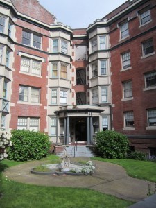 We started with breakfast at Besaw’s in Northwest Portland then strolled around the NW 23rd shopping district. The plan was that we would kill time after breakfast (until Pittock Mansion opened at 11) by hitting a few of the quaint little shops. However, I hadn’t planned on the quaint little shops not opening until 11 a.m. on a Sunday. But in the end, we had a very nice walk, circumambulating the neighborhood. Along the way, we passed the first apartment building I lived in after college (the Lucrezia Court apartments on NW 22nd Place) and hit Coffee Time for espresso. And at that point we STILL had time to kill, so we went up to the Rose Garden (the gold standard for out-of-town visitors) and snapped a few pictures (Alyx gave me some pointers on how to set my camera which are going to be invaluable.)