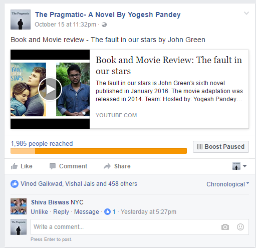 Link to my fb post: The Pragmatic- A Novel By Yogesh Pandey