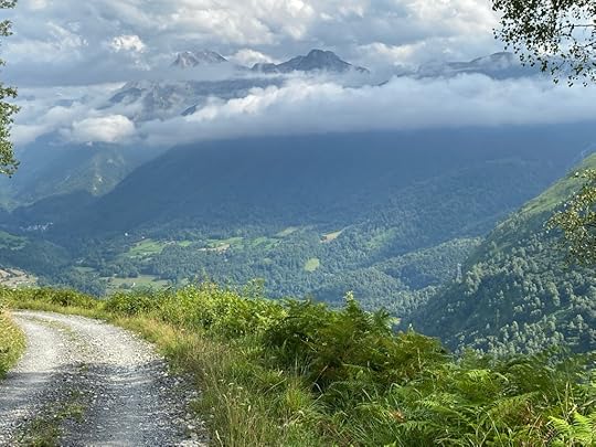 Right now am lying in bed listening to the occasional chirps of a magpie watching the clouds lift from the mountains, which surround the house. All three of us are recovering from a gruelling walk yesterday – it was cloudy so couldn’t get into the high mountains but even so got to around 3000 feet.