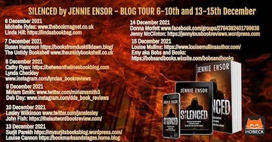 Soon I’ll be able to unveil the SILENCED video trailer, which is something else! Also there’s a blog tour video, can’t wait to share that too. In the meantime, here’s the blog tour poster: