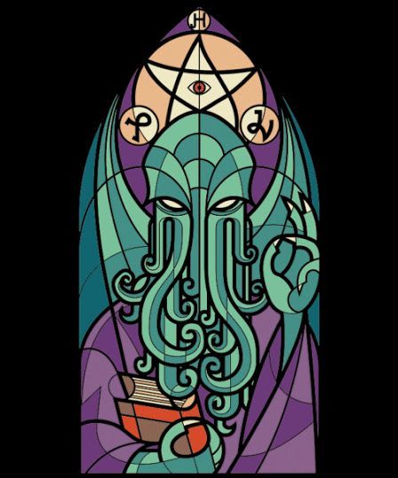 Stephen notices that Dewart sneaks wayward glances at the strange leaden window, so he decides to get a closer look at what fascinates Dewart so completely: “This was an occasional impression of a view or a portrait which appeared without any indication or warning in the window – not as if it were superimposed on it so much as if it grew out of it.” And just like that, Stephen is introduced to the visage of Cthulhu.