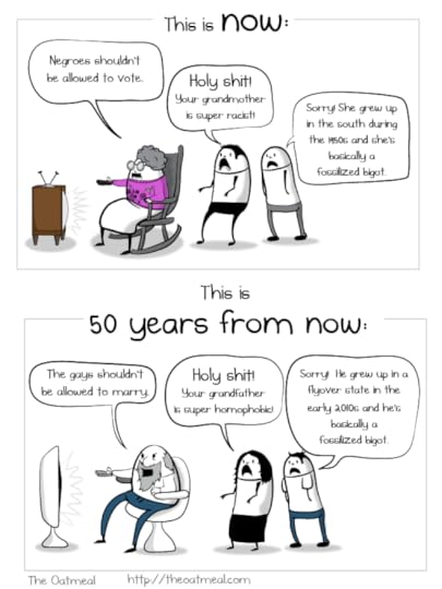 Social networking historically trends young, with the early adopters. Facebook launched as a site for college students. But as those networks grow, they inevitably age. They begin to include older people. And those older people will, statistically speaking, be more racist. I apologize if this sounds ageist, but let me ask you something: do you consider your parents a little racist? I will personally admit that one of my parents is definitely someone I would label a little bit racist. It's … not awesome.