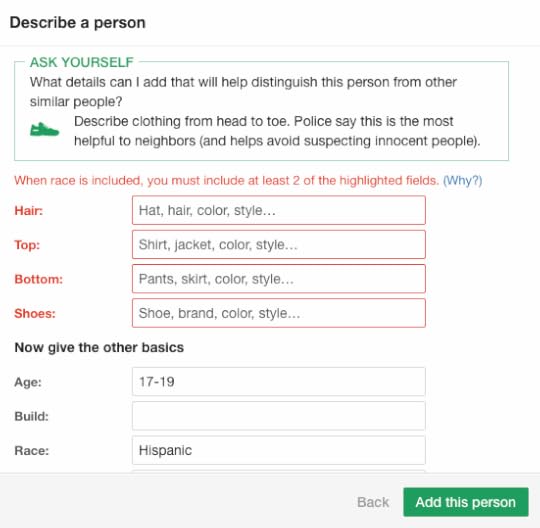 To their immense credit, rather than accepting this status quo, Nextdoor did what any self-respecting computer geek would do: they changed their software. Now, when you attempt to post about a crime or suspicious behavior …