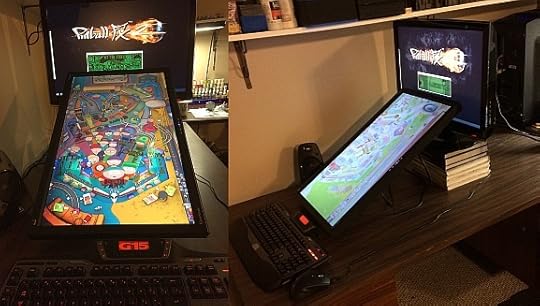 If you'd like to experiment with this and don't have three grand burning a hole in your pocket, 90% of digital pinball simulation is a widescreen display in portrait mode. Rotate one of your monitors, add another monitor if you're feeling extra fancy, and give it a go.