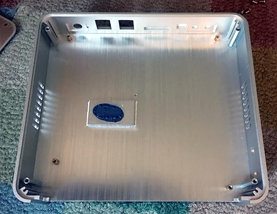 One thing that's not immediately obvious in photos is that this thing is indeed small but hefty, like holding a solid chunk of aluminum in your hand. That's because the box is passively cooled — the whole case is the heatsink, as the CPU on the bottom of the motherboard mates with the finned top of the case.