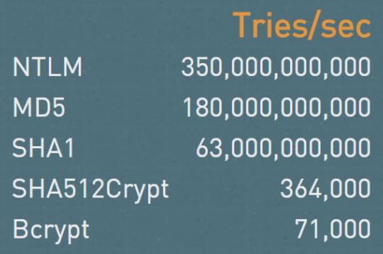 Now, to be fair, as I alluded to earlier all of this does depend heavily on the hashing algorithm that was selected. But you have to assume that every password you use will be hashed with the lamest, fastest hash out there. One that is easy for GPUs to calculate. There's a lot of old software and systems out there, and will be for a long, long time.