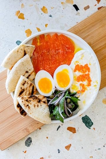 Brunch Pestrófa. House smoked trout + roe, feta krema, soft boiled egg, pita, parsley, capers. Photo by Bar Koukla.