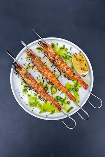 Garídes Skaras. Whole grilled black tiger shrimp with garlic, herbs, paprika and lemon. Photo by Bar Koukla.