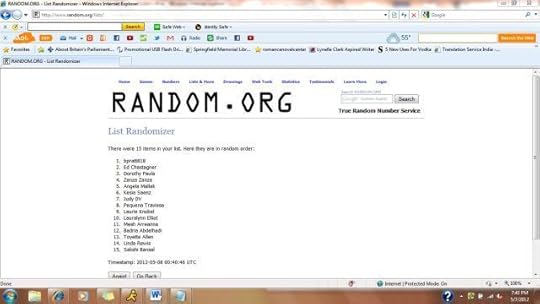 Below is a snapshot of the list of people who guessed either Mary or Dave and the winner picked by random.org. If you did guess Mary or Dave and I didn’t see your entry, please let me know. I think I got everyone, but there’s always the chance I made a mistake somewhere.