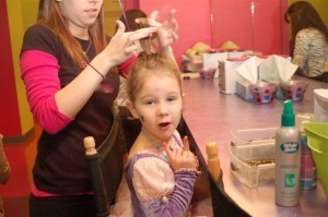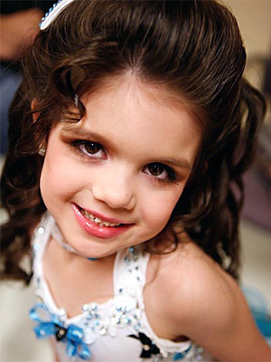 As Toddlers & Tiaras revs up for its next season (and another post on that later) and the parental outrage machine gets cranking, I'd like to just redirect for a moment with this little game. Guess which of these photos is from that program, which is from the Bibbidi Bobbidi Boutique at Disneyworld (where for a mere $189 your 2-year-old can have a makeover that "magically transforms her into a Princess," which I guess is one word for what they turn your daughter into….) and which were taken at birthday parties from the Sweet and Sassy "a cutting-edge children's salon, trend-setting retail store and the perfect celebration place: that is popping up in mall stores around the country.