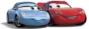 Cars: Douchebag hotshot (male) racecar Lightning McQueen reenacts Doc Hollywood. I hated this movie. Female characters: Sally Carrera, Flo, Lizzie.