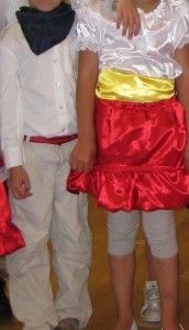 Great piece in Friday's NY Times on elementary school kids who want to wear clothing considered to be for the other sex and how parents handle it. As it happened, the Spanish Dance performance for the 2nd & 3rd years at Daisy's school was that morning. Here are the costumes the kids wore: