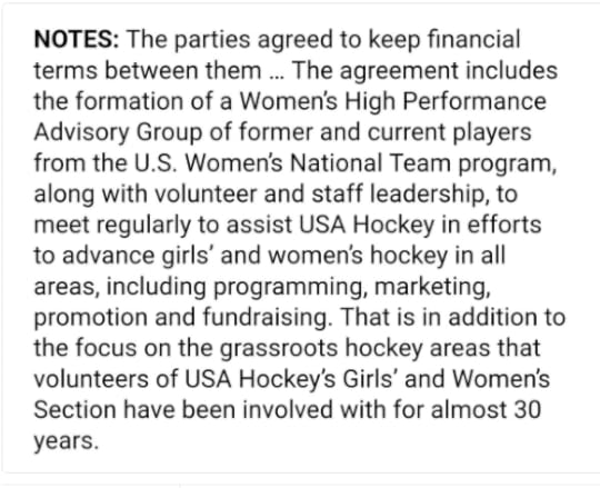 So, kicking and screaming, USA Hockey has been dragged into the 21st century. Here's the gist of the agreement, via a tweet from devoted women's hockey reporter Hannah Bevis: