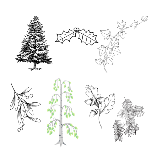 They are evergreens, holly, ivy, mistletoe, birch, oak, and yew. The greenery symbolized life, rebirth, and renewal. Ancient peoples believed evergreens held power over death itself because the green color never faded.