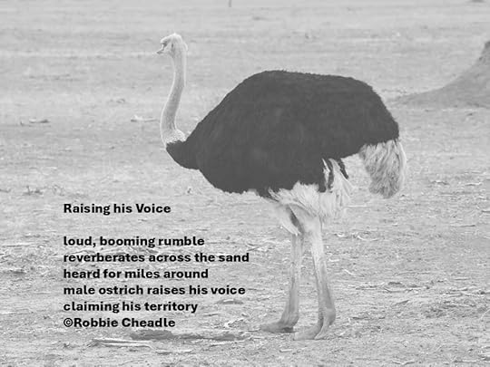 male ostrich raises his voice