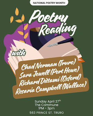 I'm reading half a dozen of my poems two weeks from today,Sunday, April 28 starting at 1 pm.