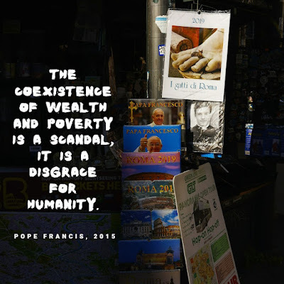 "The co-existence of wealth and poverty is a scandal, it is a disgrace for humanity."~ Pope Francis, 2015