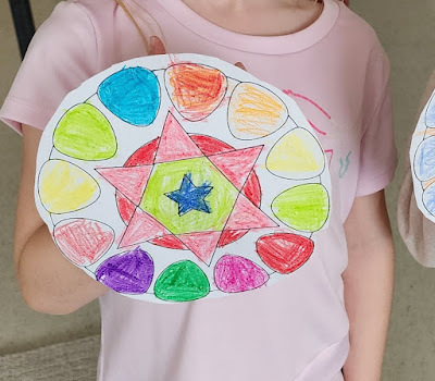 This is why I love doing art with young students, and why I like doing freewheeling art. I get that art done in the classrooms, and art done in art class, is often all the students following one way, following the same guidelines -- I see that in classrooms all the time -- because of time constraints, and sure these mandalas are pre-designed and actually printed off the internet for my convenience. But the creative idea that young student had, what she saw and wanted to create, the next steps she knew to take, was freewheeling.