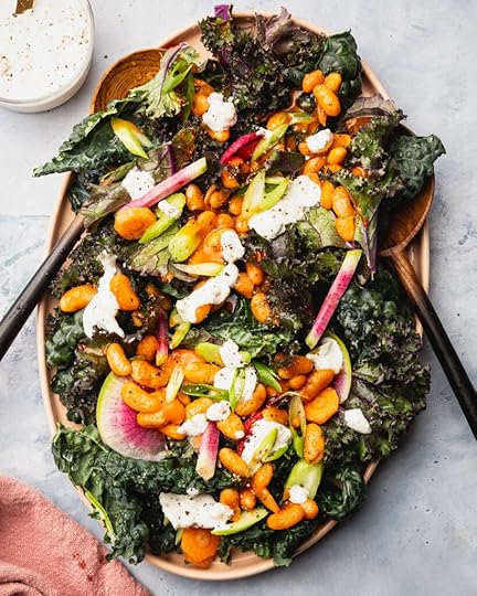 The post Buffalo White Bean Kale Salad with Blue Cheese Yogurt Dressing appeared first on Vegetarian 'Ventures.