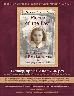 Announcing the launch for my brand new book Pieces Of The Past, The Holocaust Diary of Rose Rabinowitz, Winnipeg, Manitoba, 1948.Tuesday, April 9, at the Berney Theatre, Asper Community Campus, 123 Doncaster Street, Winnipeg.