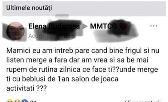 Declaratia asta e din sfera: al meu e cel mai bun, mai frumos si mai destept! El nu greseste niciodata, e perfect, ca eu l-am facut. Toti cei care nu il lasa pe ala micu’ sa incalce orice regula sunt rai si dau cu gloante in el.