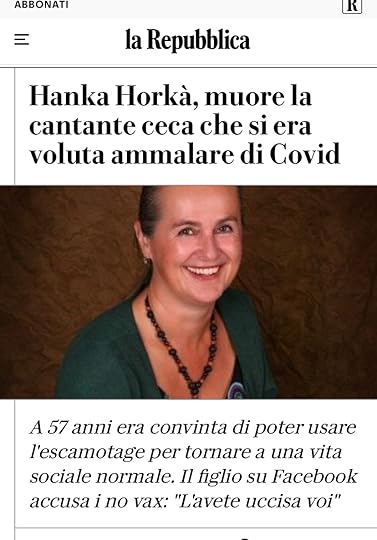 „O cantareata din Cehia a preferat sa se infecteze intentionat cu Covid pentru a se imuniza, in loc sa se vaccineze. A murit. Fiul ei acuza acum miscarea antivaccinista, care i-a spalat mintile.”