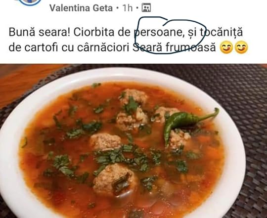 Altul a scris: CIORBA – DE RAHAT, FRIPTURA – TARE, SARMALELE – ORIBILE. Cred că e bunica.