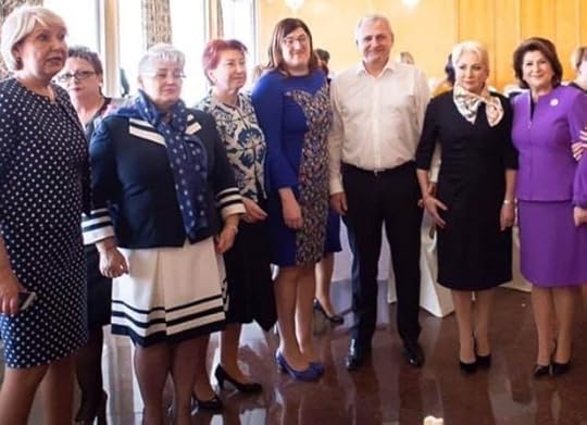 Vreau sa va spui ca de zece ore nu am liniste si vreau si io asa haine frumoase. Ia uite la doamna care e marinar! Ia uite, ai mai vazut matale asa atitudine, asa fustita de capitan de vas de marfa, asa esarfa frantuzita? Eu nici in Obor, cand am fost in ‘87 la Bucuresti, nu am vazut ceva asa frumos. Nici la Dragon, acu’ un an! Sau ce sa mai zic de frumuselul ala din stanga lu’ domnul Dragnea? Asa imbracat elegant el, sa il manance Marieta, ca vreau si eu telefonul lu’ croitorul lui ca am o nunta duminica. Numai duamna Grapini mai are rochii asa frumoase. Cu floricele, da’ ea nu e frumoasa ca el!