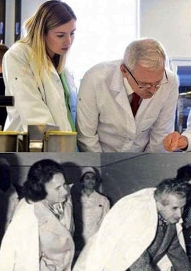 (In imagine, tovarasa Irina Tanase, studiind o picatura de lapte portocaliu la microscop)