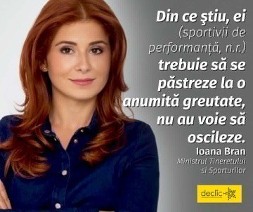 Intr-o declaratie a spus ca sportivii ar trebui sa tina dieta. Ca si cum un sportiv de performanta, care face antrenamente in fiecare zi, ar avea nevoie sa tina vreo cura de slabire cu varza. Sau sa isi bage pe gat doua degete, cum fac toate pitipoancele care mananca prea mult, ca sa isi mentina silueta.