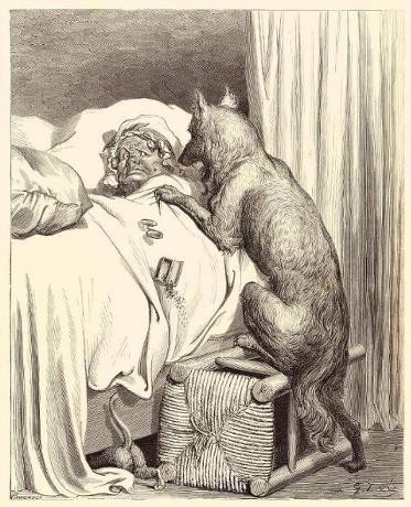 He had always connected this dream with the recollection that during those years of his childhood he was most tremendously afraid of the picture of a wolf in a book of fairy tales. His elder sister, who was very much his superior, used to tease him by holding up this particular picture in front of him so that he was terrified and began to scream. In this picture the wolf was standing upright, striding out with one foot, with its claws stretched out and its ears pricked. He thought this picture must have been an illustration to the story of Little Red Riding Hood.