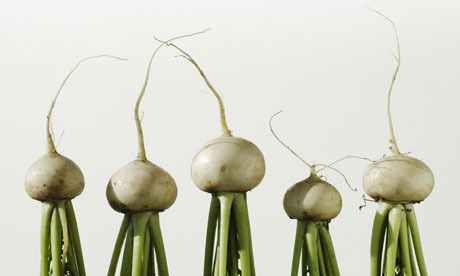 He arose and set off across field and forest and searched through every turnip field but nowhere found what he was looking for. Day passed and night, too, and one evening, he sat down on a ridge beneath a bush, a flowering blackthorn with red blossoms on one branch. He broke off the branch, and because there was before him, amongst the other things on the ground, a large, white turnip, he stuck the blackthorn branch into the turnip and fell asleep.