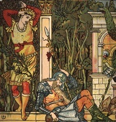 "Now I shall find a beautiful maiden," cried the prince and went forth nimbly. He came to a field of turnips and was about to place the nail beneath one of them when there appeared above him a monster, so that he dropped the nail, pricked his finger on a hedge and bled until he fell down senseless. When he awoke he saw that he was elsewhere and that he had long slumbered, for his smooth chin was now frizzy with a blond beard.