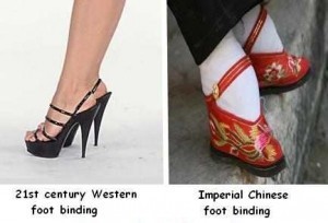 Dorothy Ko's Cinderella's Sisters: A Revisionist History of Footbinding has been the standard work on the ancient practice for several years now. Ko's premise is that footbinding was "an embodied experience, a reality to a select group of women from the twelfth to the twentieth centuries." Instead of denouncing it, she aims to understand "the powerful forces that made binding feet a conventional practice . . . The reality of the practice lies not only in the screams and tears on a girl's first day of biding, but also in the assiduous maintenance and care she had to lavish on her feet every day for the rest of her life." Ko points out that Hill Gates and Laurel Bossen, featured in the link below, offer an explanation of footbinding based on fieldwork in Sichuan and Fujian: "Peasant women with bound feet routinely performed such tasks as spinning and weaving, oyster shucking, and tea picking, which required strength and skill in her hands but not her feet. Footbinding lost its raison d'etre when factory-based textile production replaced home-based spinning and weaving." Ko points out that footbinding is not a uniform and timeless practice "motivated by a single cause" and that monocausal explanations misfire, failing to grasp the complexities of the social practice.