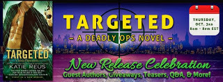 What: Celebrate the release of TARGETED, the first book of the hot, action-packed Deadly Ops series, with me and a group of author friends. There will be tons of book giveaways, gift card giveaways, and guest authors stopping by with prizes of their own!