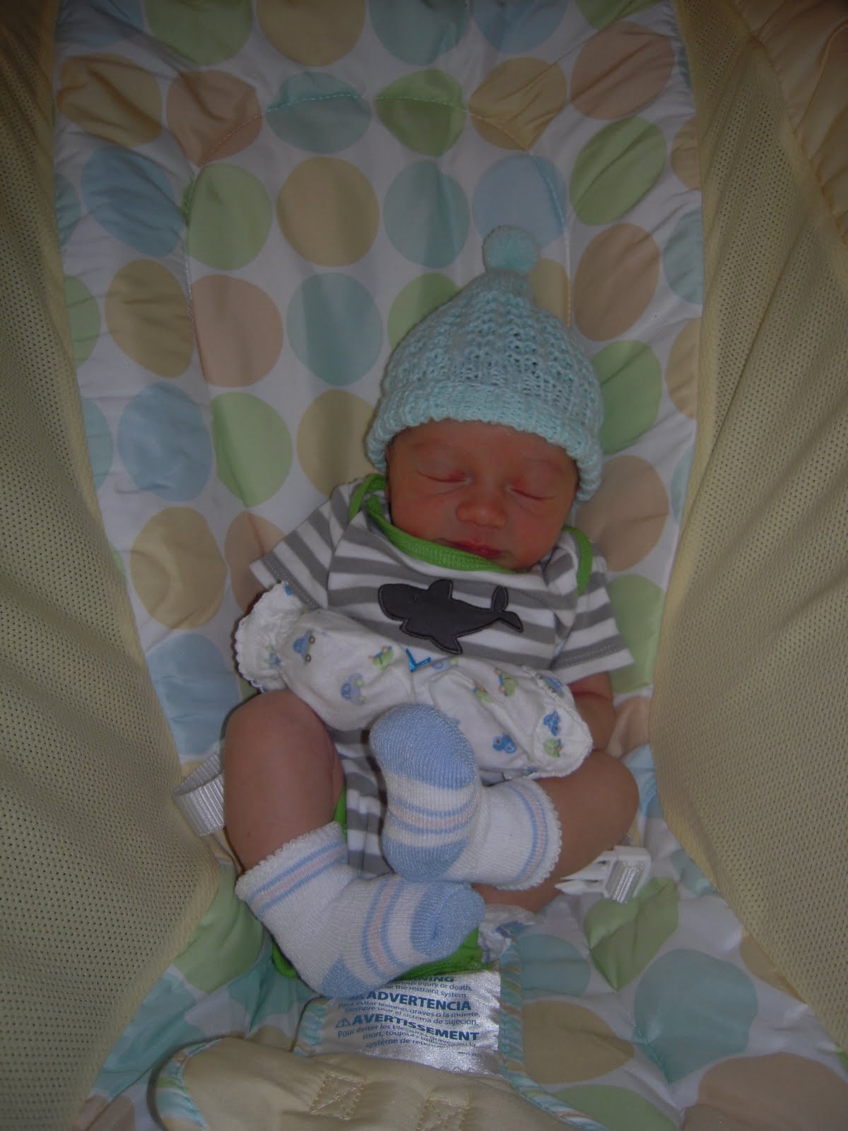 When he came out he was 6 pounds 14 ounces. He's got a ton of dark hair (just like his mom!) and my facial features but he's totally got his father's expressions. I can't stop staring at him he's so cute! I didn't think it would be possible to love someone so much.