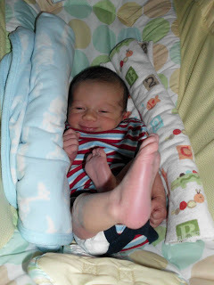 A few days later we left the hospital we thought that would be it, but because his jaundice levels kept rising we were readmitted a couple days later. He did not like the bili light we had to put him under at all. Poor guy cried most of the night which was torture to listen to. Thankfully they let us take him home the next day and had a home health company send us a bili blanket to keep him wrapped in. He didn't like the constricting blanket either but he was much calmer. So, after a week of blood tests, pediatrician and doctor appointments he's finally home and healthy.