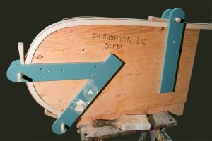 Unless the stem top repair is very short, it will require the use of a new piece of ash that is pre-bent to fit the curve of the original stem. Since you are not replicating the entire stem, the curved section can be created by bending the new ash onto any stem form. I used a stem form built to make new stems for a 1905 J.H. Rushton Indian Girl canoe. The 4/4 stock was soaked for four days , steamed for 60 minutes and bent over the form with a backing strip. It was left to dry for a week before removing it from the form.