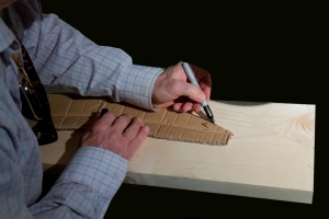 Use a permanent ink pen to mark the curve of the sheer line on the cardboard.