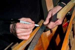 Line up the new wood with the original rib and mark the location of the matching scarf.