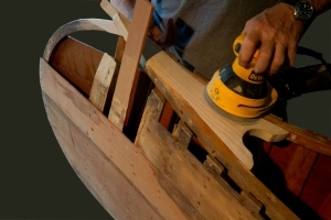 Sand the inside surface of the new inwale end until it is a precise fit. I use a belt sander turned upside down.