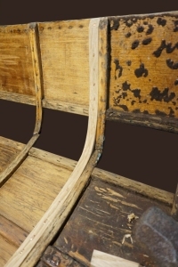 A total of twelve broken ribs were sistered in this canoe. The ribs were repaired in stages, doing every second rib along the length of the canoe in order to maintain the shape of the hull as much as possible.