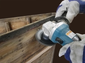 Getting rid of the heads and punching them through to the inside works best. I use an angle grinder set up with a 24-grit sanding disk to grind off the heads of the copper nails. Care must be taken to ensure that only the board to be removed is touched by the grinder.