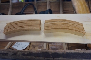 With the process honed, I turn to the Big One. I begin by making 16 basswood spacers for the ribs.